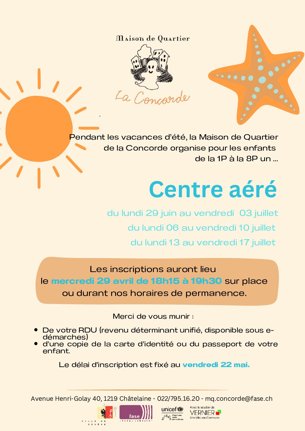 La Maison de Quartier de la Concorde est heureuse de vous informer de l’ouverture de son centre aéré pour l’été 2026. Nous serons ravis d’accueillir vos enfants durant les trois premières semaines de juillet. L’équipe de la MQ ConcordeRead More